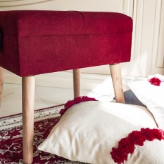 Sgabello Contenitore Wonder Bordeaux con Piedi In Legno