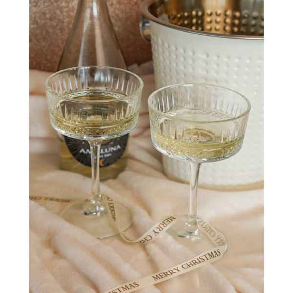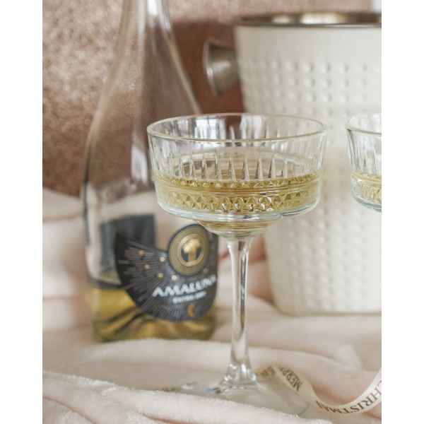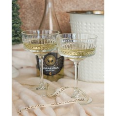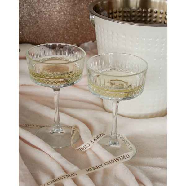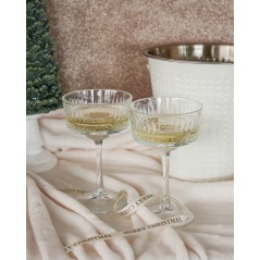 Eleganti e dal design vintage in grande spolvero in questo periodo, gli Elysia sono dei bicchieri in vetro a coppa bassa di grande impatto scenografico. Utilizzabili per cocktail, per champagne o anche per dei dessert.