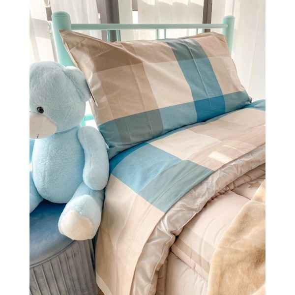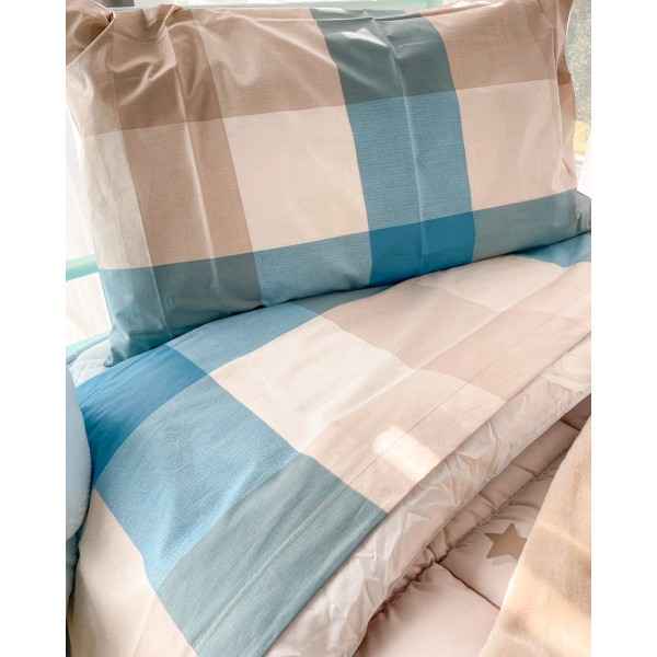 Il completo è 100% cotone, disponibile singolo, piazza e mezza e matrimoniale.