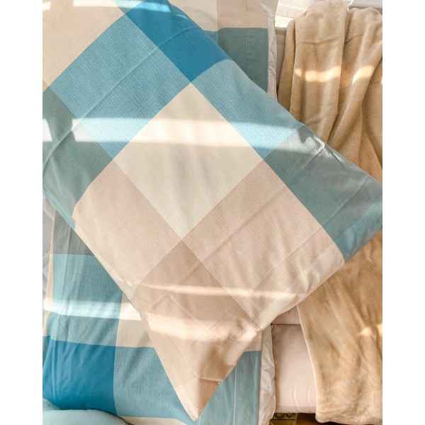 Completo Lenzuola Living Imberti con un disegno quadroni stampato, molto moderno, per chi ama le geometrico.