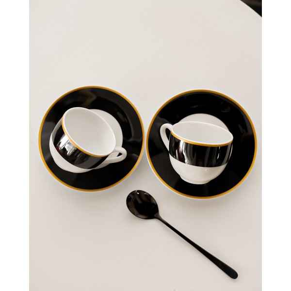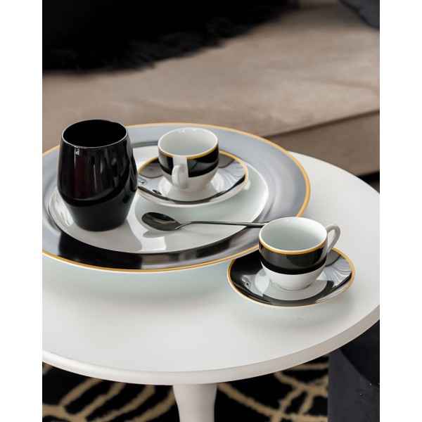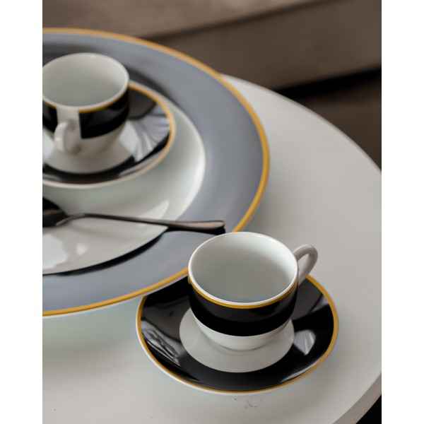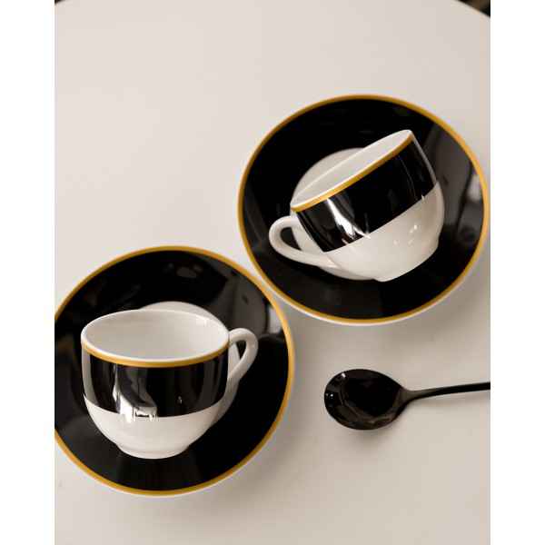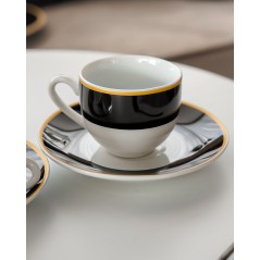 Set Tazzine da Caffè Onyx Bianche e Nere Con Piattino 6 Pezzi