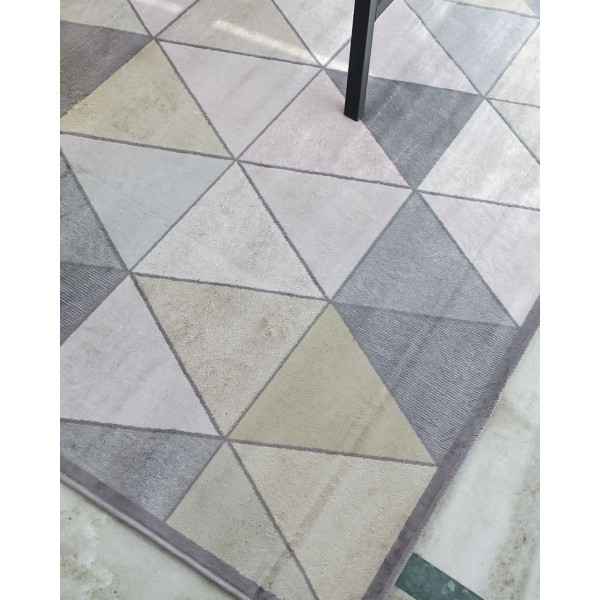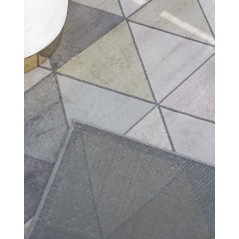 Tappeto Venus geometrico con triangoli. In 100% viscosa e supporto inferiore in latex antiscivolo.