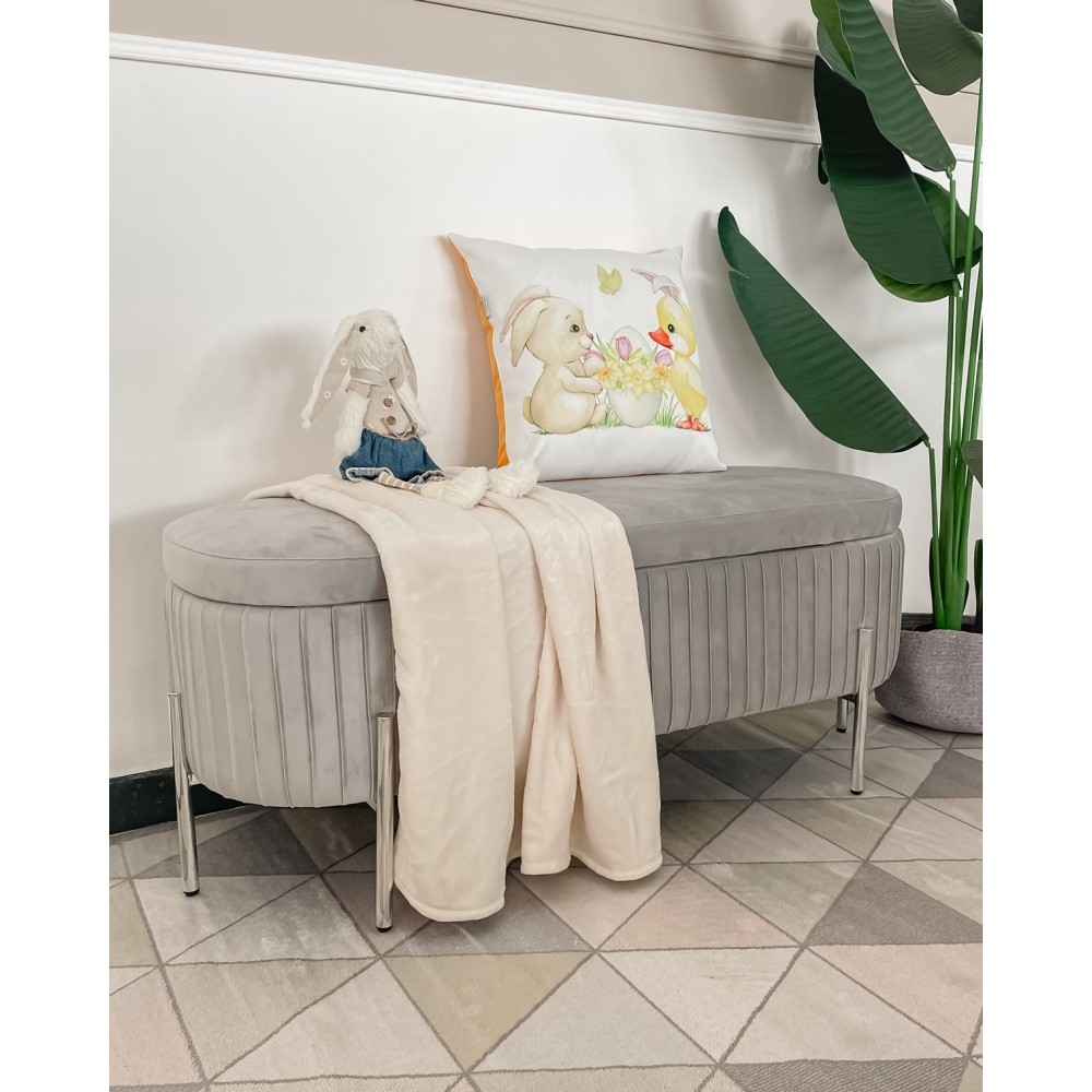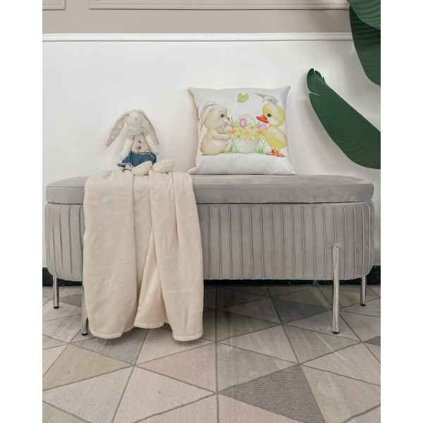 Panca contenitore di AD, color tortora con piedi. La panca è comoda anche per sedersi, ma soprattutto per riporre oggetti, puoi metterci dentro coperte, libri, scarpe. Un bellissimo complemento d’arredo che si adatta a ogni ambiente. La parte superiore ha 3 bottoni ed è liscia, la parte inferiore è con modanatura a costine. In velvet.