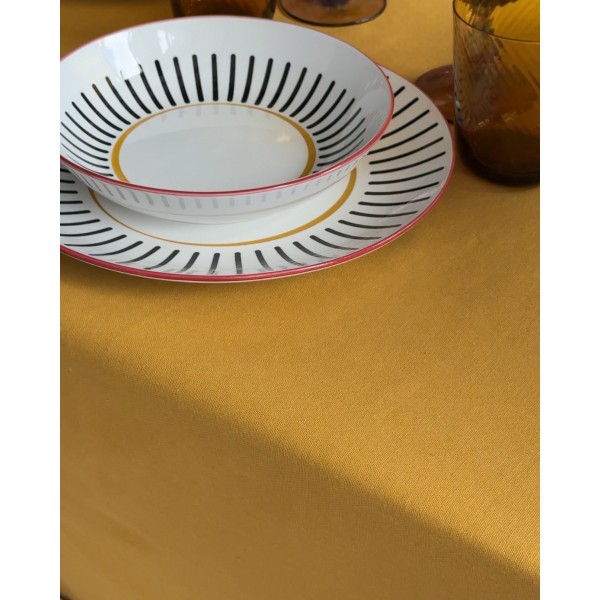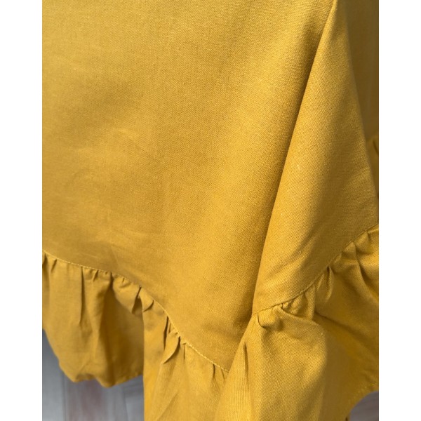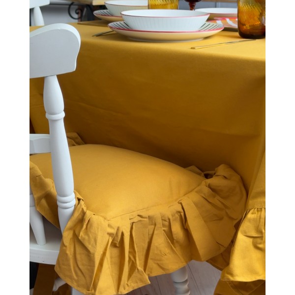 Tovaglia panama colore tinta unita, molto elegante, impreziosita da un grande frill lungo i borsi che la rende unica ed originale. In abbinamento puoi anche scegliere i cuscini coprisedia Frill della stessa linea.