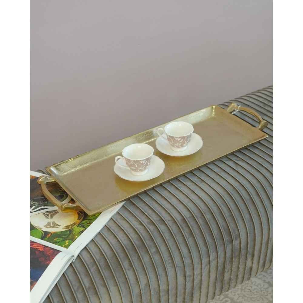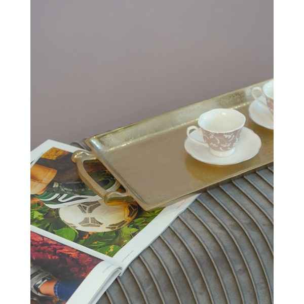 Vassoio Rettangolare in Metallo Dorato Ad Effetto Invecchiato In Due misure Con Manici