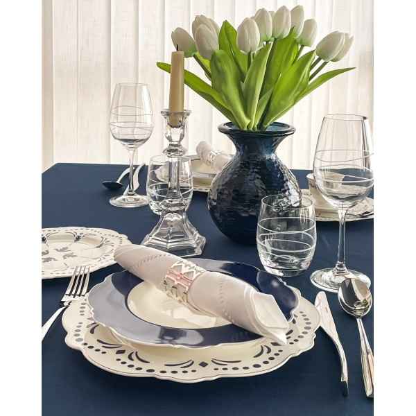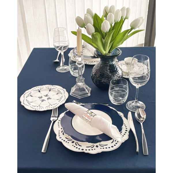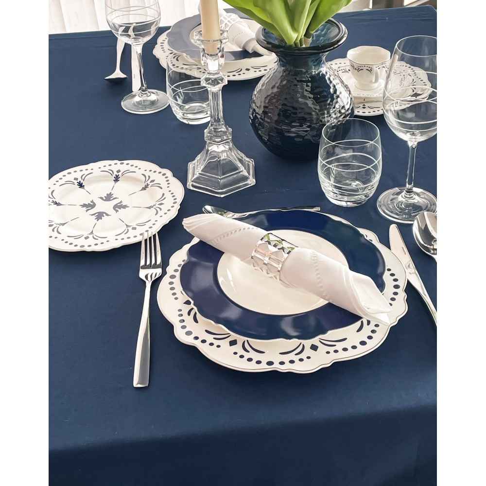 Servizio di Piatti Lord Bianchi e Blu Preziosa Luxury 18 Pezzi