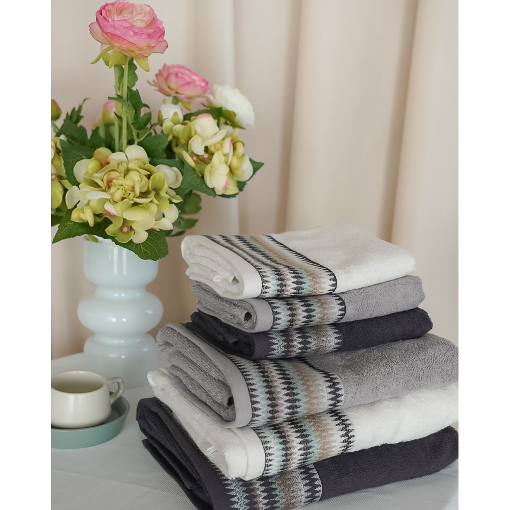 Il Set di asciugamani Oslo è composto da un asciugamano viso e un ospite, in pura spugna di cotone 100%.