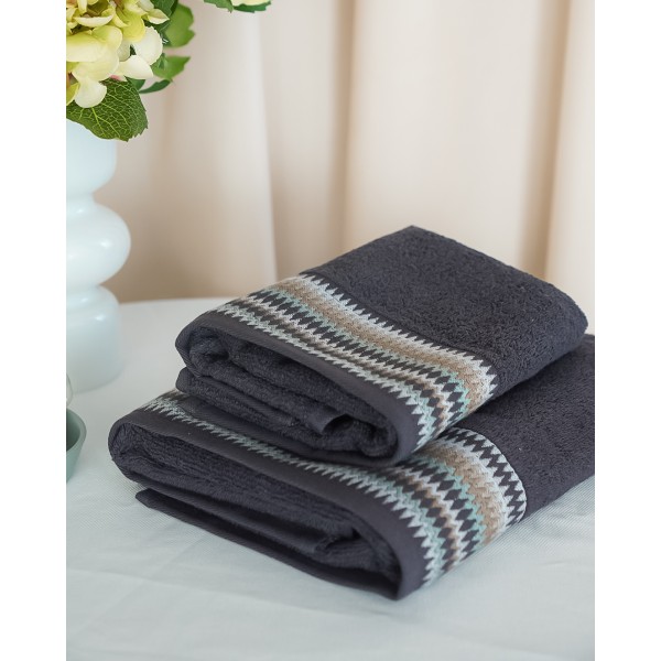 Set 2 Asciugamani Oslo Viso e Ospite Vingi Ricami in Spugna di Cotone 100%