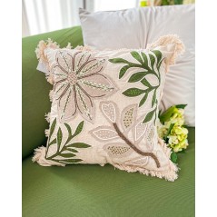 Cuscino Arredo Verde e Beige Hanna Home Con Disegno Floreale e Frange Con Zip
