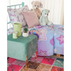 Pouf in Velvet con Piedi in Metallo Dorato