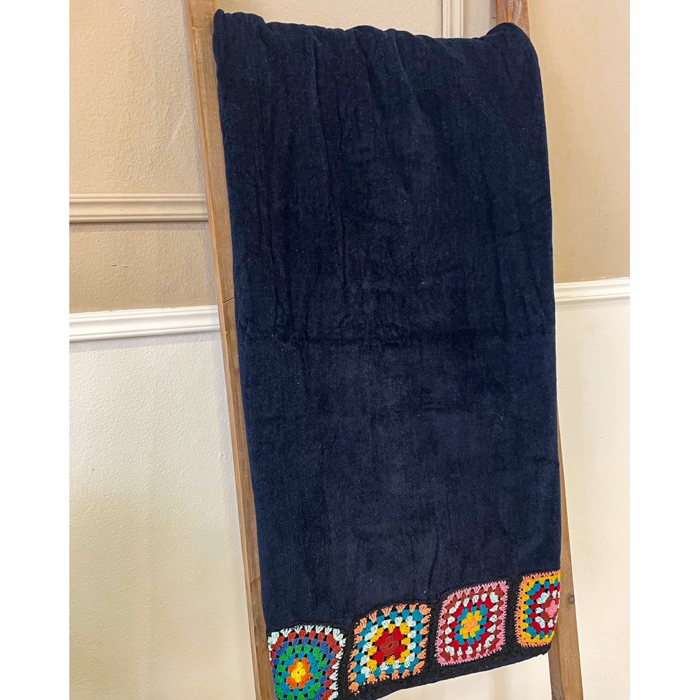 Il Telo mare Cancun è realizzato in cotone velour, assorbente e morbido al tocco. Le applicazioni all’uncinetto sono interamente realizzate a mano da esperti artigiani che ne fanno un capo originale ed esclusivo. Disponibile in 5 colori.