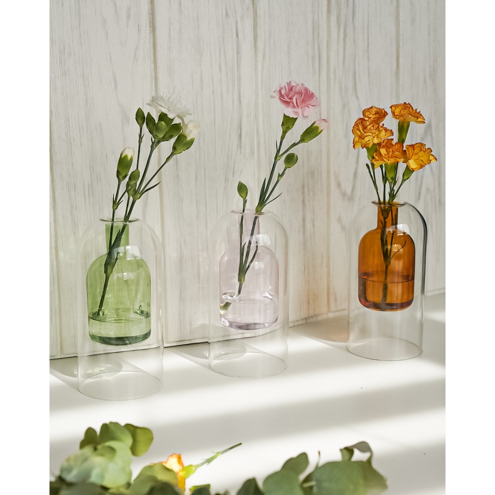 Vaso in vetro a doppia camera, elegante e minimal, ideale per chi ama anche il monofiore. La doppia camera dona un tocco di grande stile al vaso. L’interno puoi sceglierlo in risa, verde e ambra.