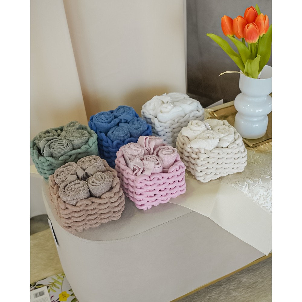 Set 4 Lavette Tallin 100% Cotone Contenitore in Corda Intrecciata. Le lavette sono in abbinamento con il contenitore in corda, molto elegante.