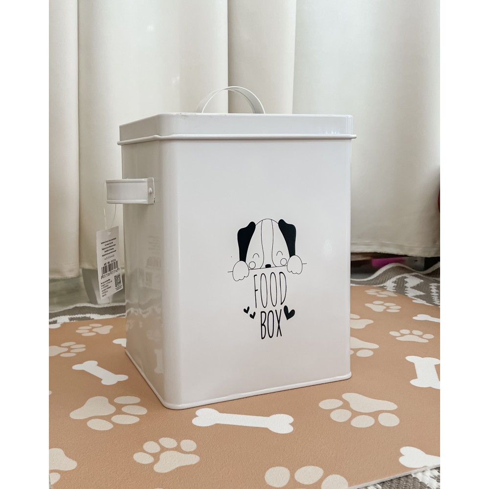 Contenitore Per Crocchette per Animali Food Box in Metallo Con Coperchio e Manici