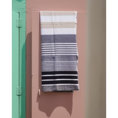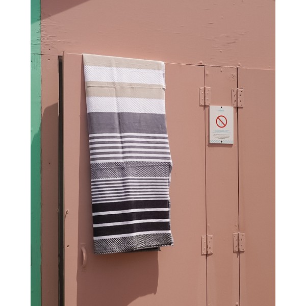 Asciugamano da mare Portofino, caratterizzato da motivo a righe, questo telo mare in spugna 100% cotone sarà sempre pronto ad asciugarti dopo esserti tuffato in acqua, sia al mare che in piscina.