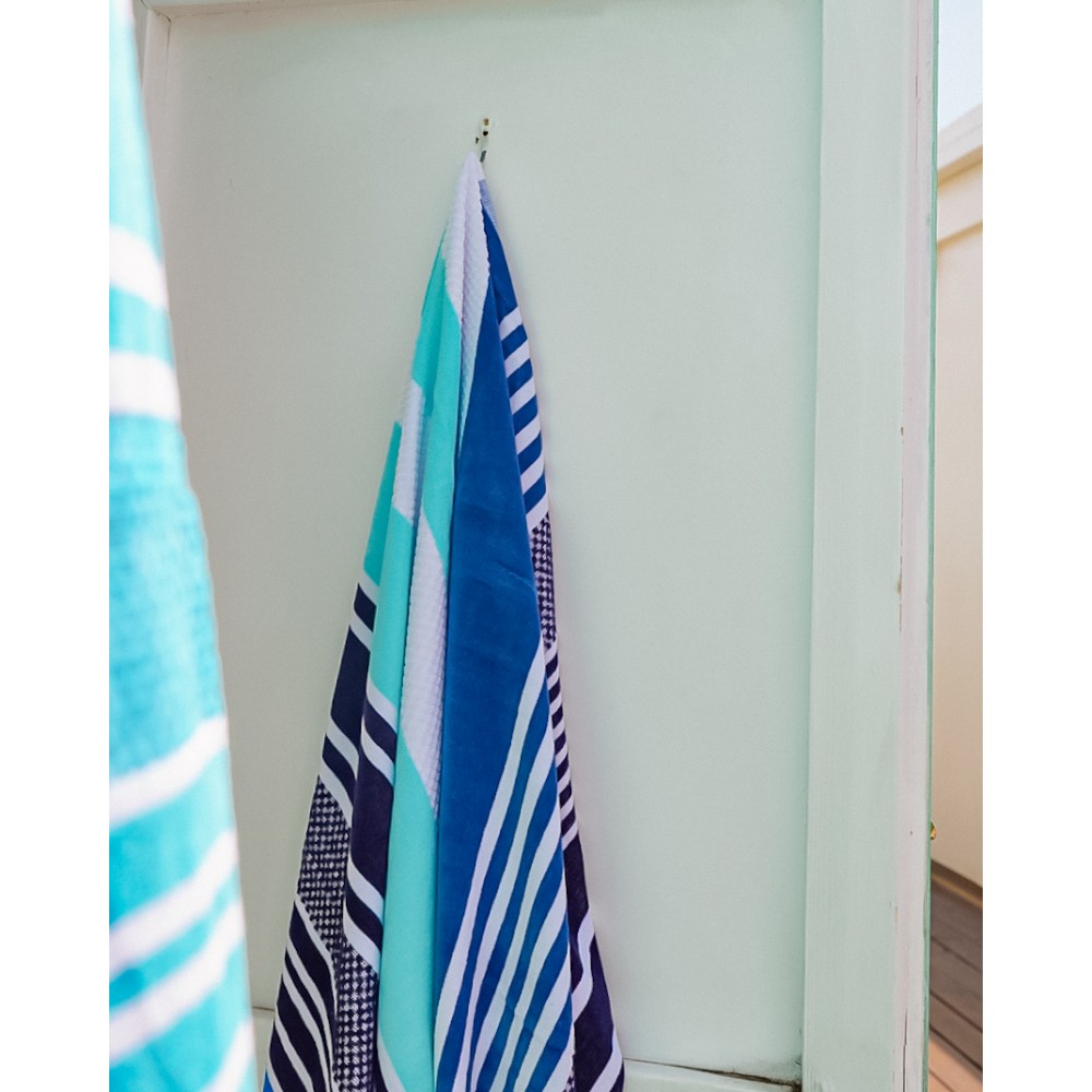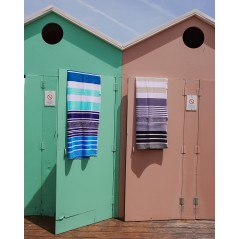 Asciugamano da mare Portofino, caratterizzato da motivo a righe, questo telo mare in spugna 100% cotone sarà sempre pronto ad asciugarti dopo esserti tuffato in acqua, sia al mare che in piscina.