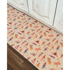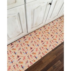 - Passatoia dal simpatico pattern estivo, fondo sabbia con donne e uomini alle prese con la tintarella o le tavole da surf.