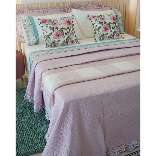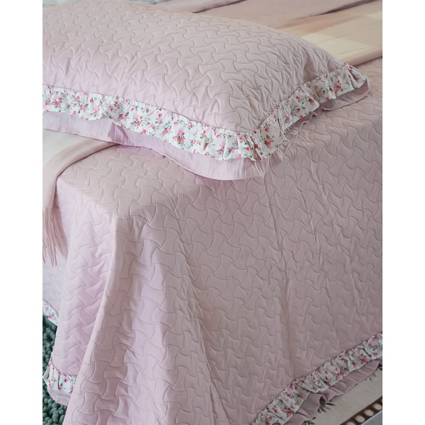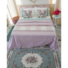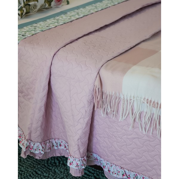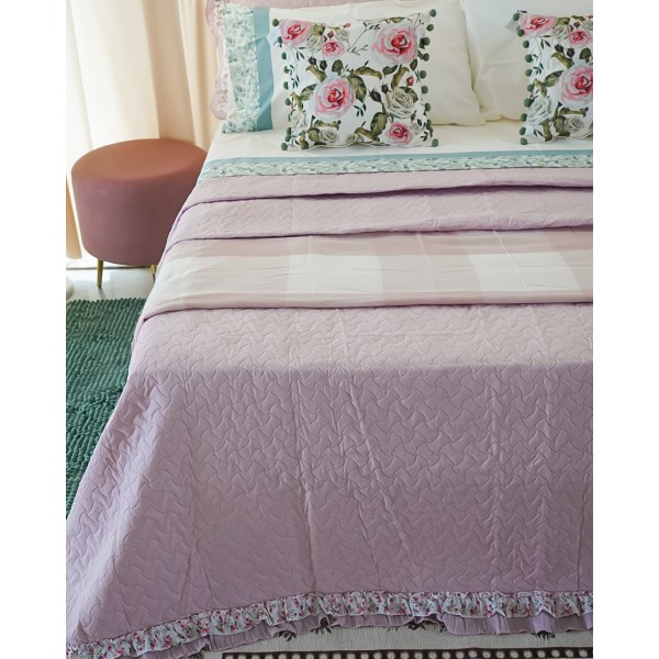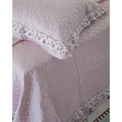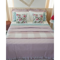 Trapuntino matrimoniale Primavera con due federe, di NAZARENO GABRIELLI, un trapuntino leggero, dal gusto sabbi. Presenta un tinta unit con una trapuntata puntata e una doppia balza di cui una con un floreale nei toni del rosa e del verde.