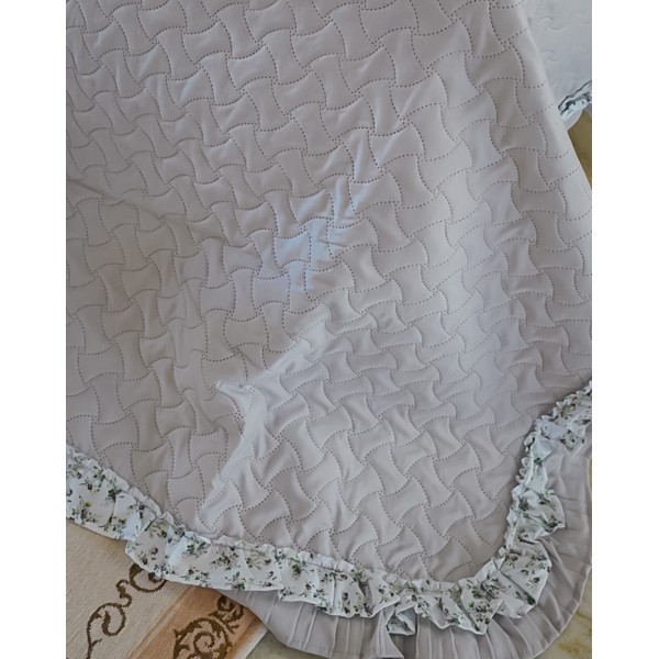 Trapuntino matrimoniale Primavera con due federe, di NAZARENO GABRIELLI, un trapuntino leggero, dal gusto sabbi. Presenta un tinta unit con una trapuntata puntata e una doppia balza di cui una con un floreale nei toni del rosa e del verde.