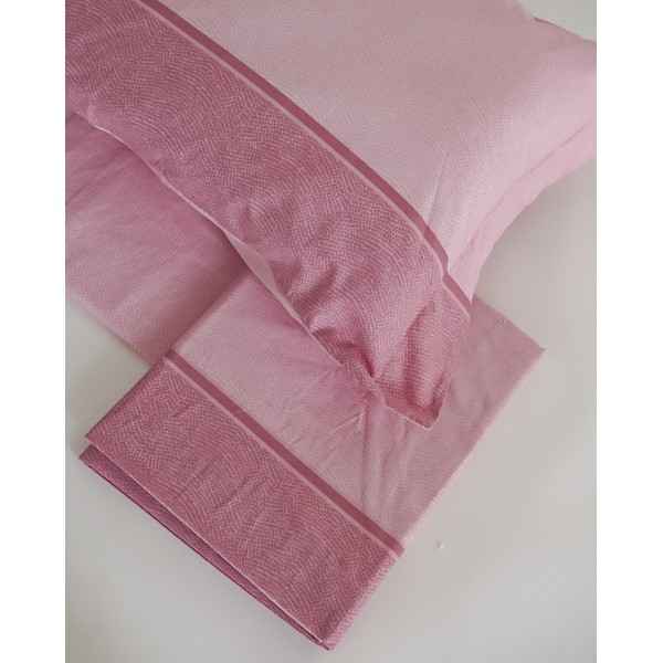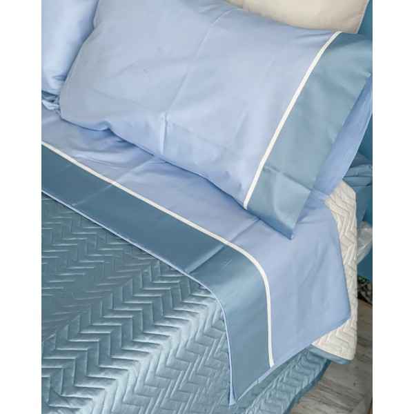 Il completo è in cotone e il set comprende: lenzuolo sopra, lenzuolo sotto e 2 federe a sacchetto.