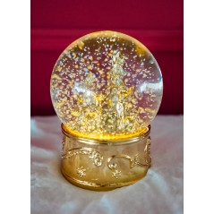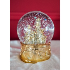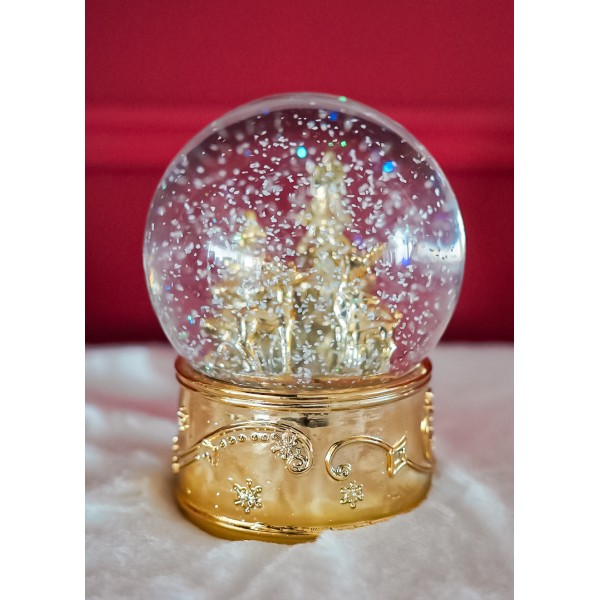 Sfera Natalizia Luminosa In Vetro Con Acqua e Base Dorata