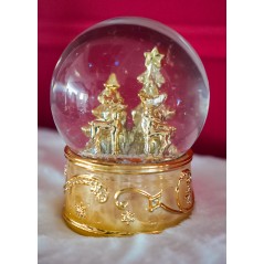 Le sfere natalizie hanno anche l'interno con delle scene dorate e potrai scegliere tra 3 modelli: una con le renne e alberi natalizi, una con degli animali del bosco (tra cui l'orso) e alberi natalizi e la terza con 3 simpatici gnomi.