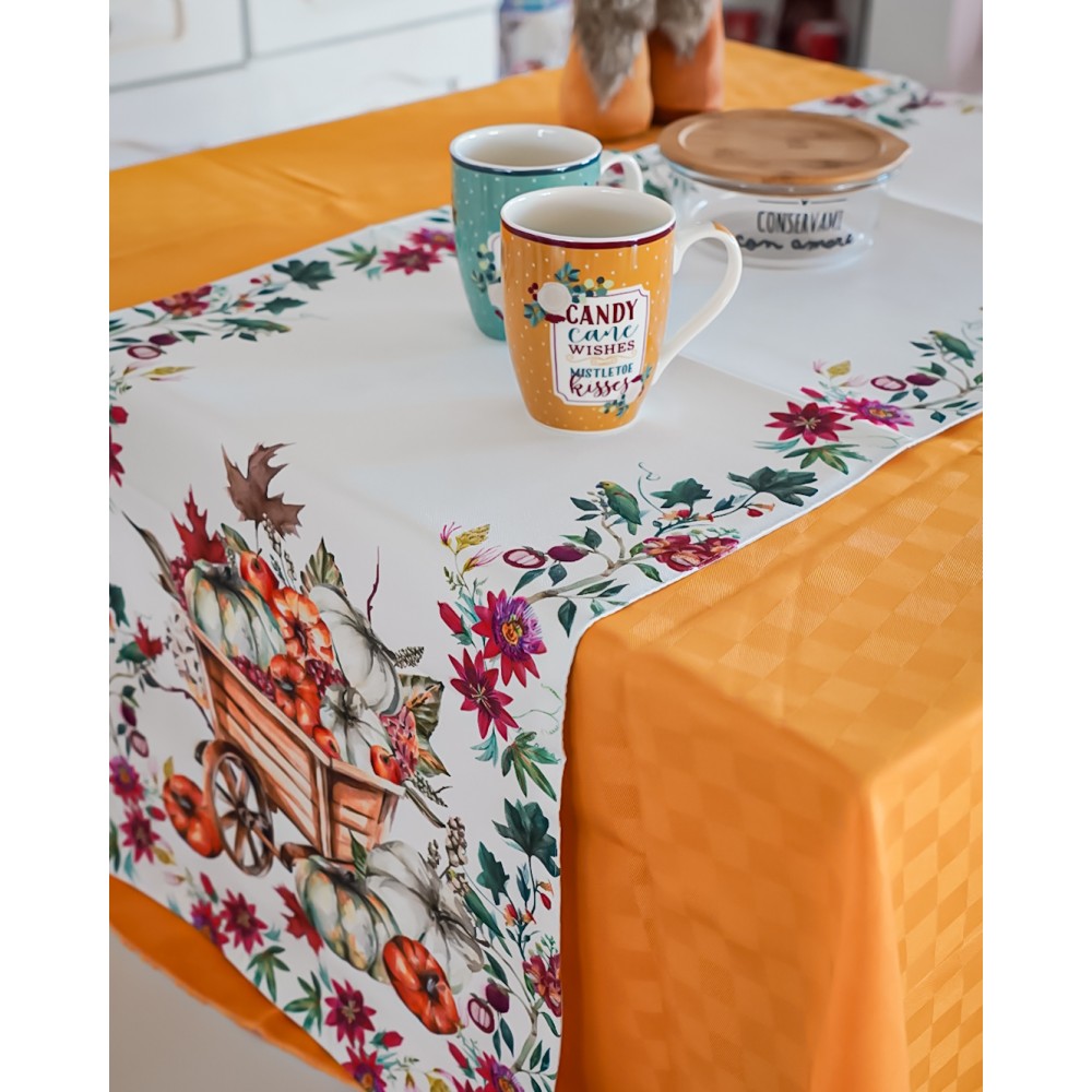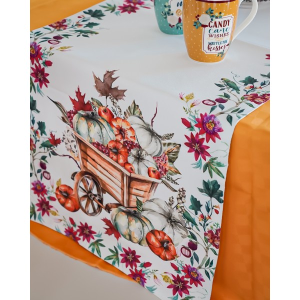 Runner in Fantasia Autunnale con Zucca in Lino Grezzo 40x140 cm