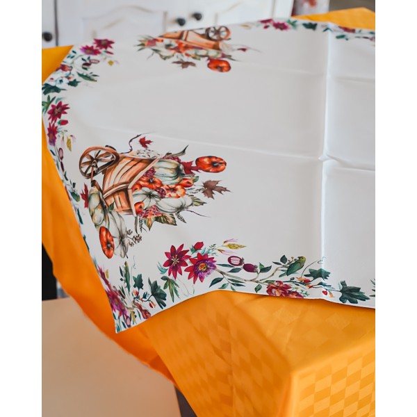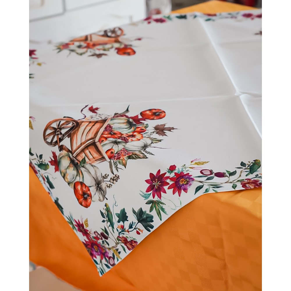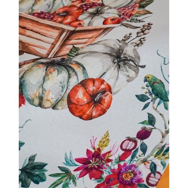 Centrotavola in Fantasia Autunnale con Zucca in Lino Grezzo 90x90 cm