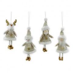 Set 4 Personaggi decorativi da Appendere nei Toni di Beige e Dorato h 19 cm