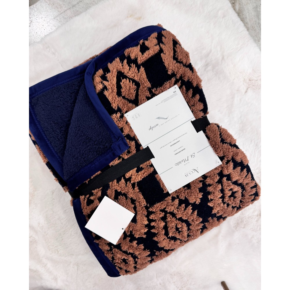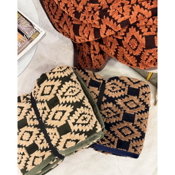 Elegante Plaid St. Moritz Acca24, in morbido Flannel Jacquard 300gr e retro in tinta. Il bordo è in velluto. Un plaid che non passa inosservato, con un gran carattere, in grado di dare corpo e stile alla tua zona living o alla tua camera da letto.