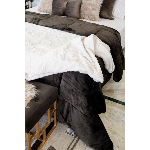 Bellissima e tanto d'effetto: Coperta Plaid Ravaniemi Rabbit Jacquard Con Effetto 3D Floreale, 240gr/m, morbidissima. Di Acca24. Parte superiore effetto 3D, parte inferiore liscia. Disponibile misura matrimoniale.