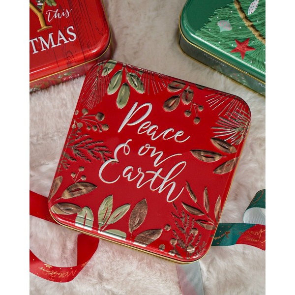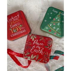 Scatola Contenitore in Latta Natalizia 17x17x6 cm 6 Varianti Differenti