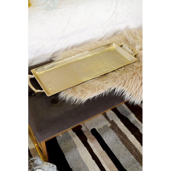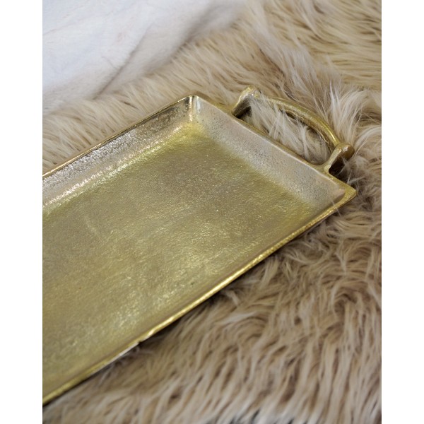 Vassoio Stile Etnico Dorato O Argentato Con Manici Due Misure 60x20 - 30x15 cm