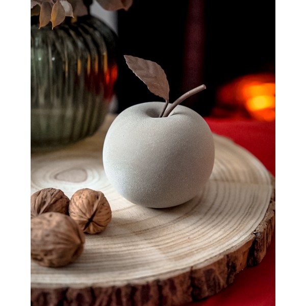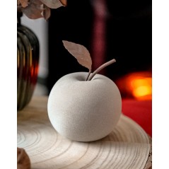Mela Satinata in Ceramica Con Foglia in Metallo Decorativa