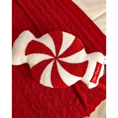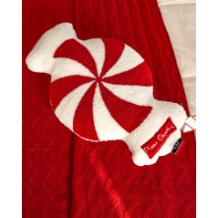 Elegante, bianco e rosso, con ricamo a punta spugna, lavorato a mano. Design che ricorda na caramella, logo Pierre Cardin laterale, ricamato. Cuscino con zip, sfoderatile.