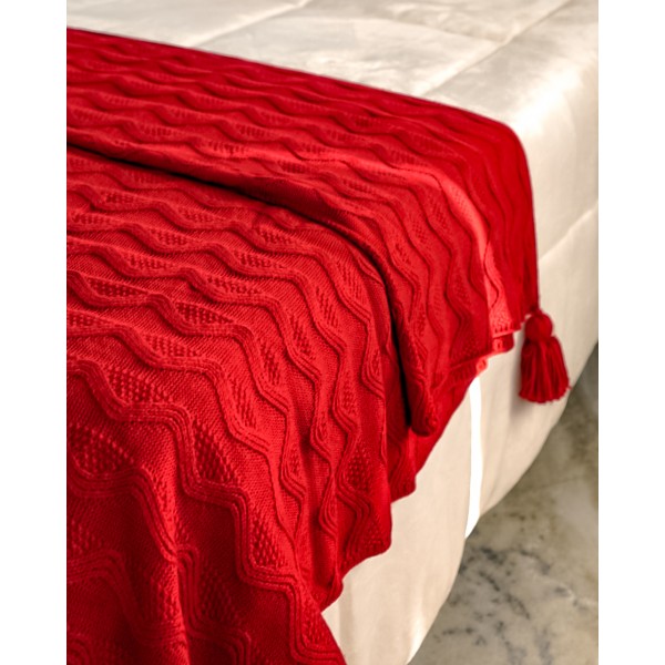 La coperta in maglia Preziosa Luxury è una chicca che oltre a scaldare arreda elegantemente la tua casa, tinta unita con un elegante rosso. È una coperta lavorata, con delle nappine agli angoli.
