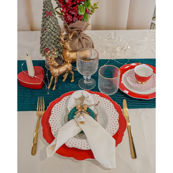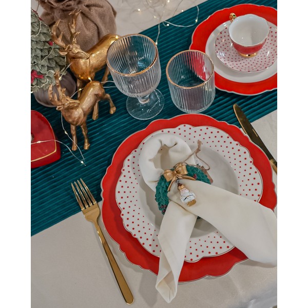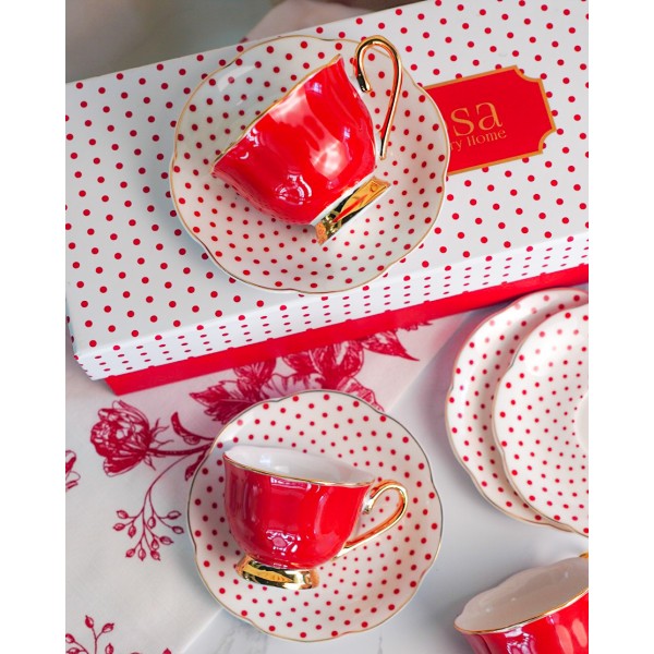 Il set di 18 pezzi Rossi a Pois con filo oro nel perimetro del piatto, rientra negli articoli della collezione di Preziosa Luxury Home. I piatti sono realizzati in porcellana New Bone e lavorati a mano. Il set è per chi ama arricchire la tavola ed avere una mise en place elegante e perfetta in ogni occasione.