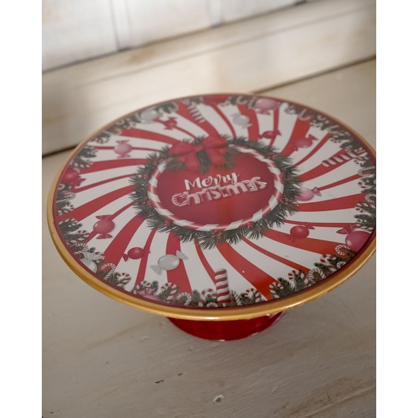 L'alzata riproduce disegni prettamente natalizi, perfetta per dolci o panettoni. Si monta con una vita centrale che collega alzata e piatto. facilissimo il montaggio.