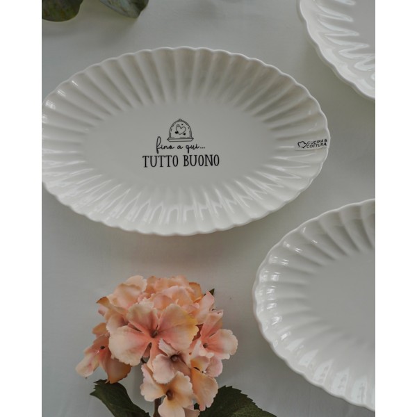 Piatto Vassoio Ovale Con Frasi Bianco in Ceramica AD