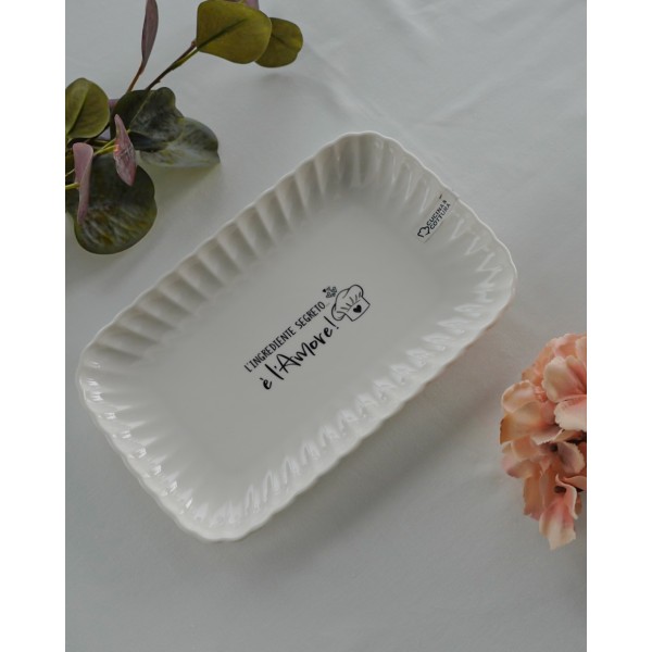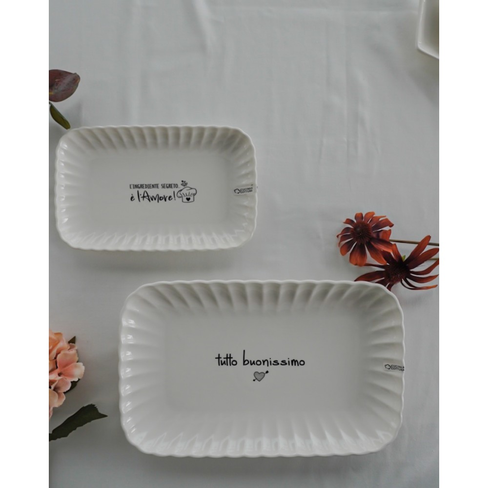 Piatto Vassoio Rettangolare Con Frasi Bianco In Ceramica AD