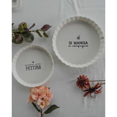 Piatto vassoio per torte o crostate in ceramica, disponibile in 2 dimensioni, ognuno caratterizzato da una frase fresca, moderna e divertente. Belli da avere per stupire gli occhi e altrettanto belli come idea regalo.