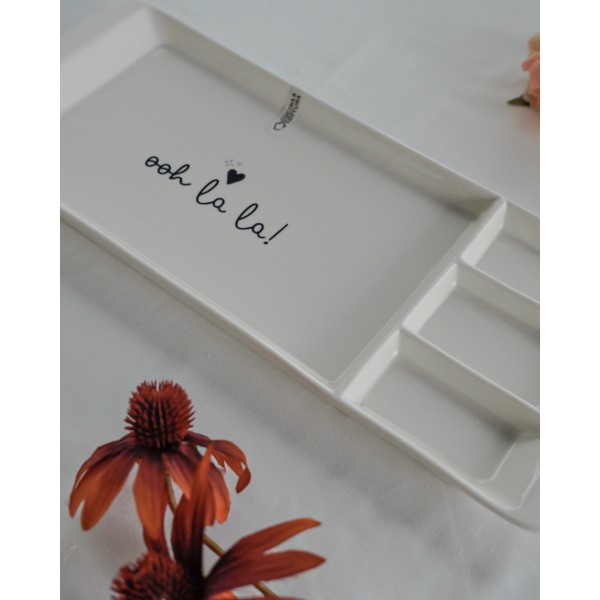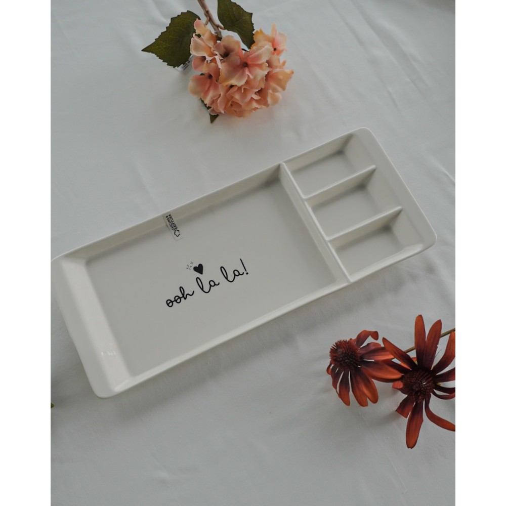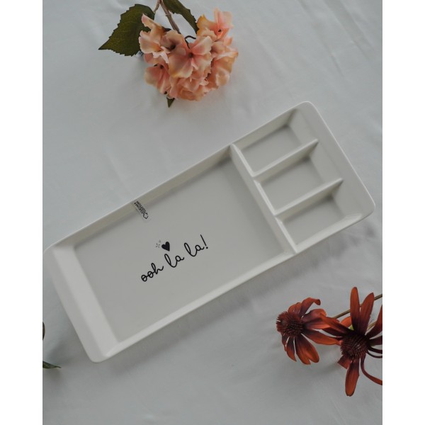 Piatto Vassoio Rettangolare con Quattro Scomparti Con Frase Bianco In Ceramica AD