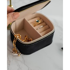 Porta gioielli da viaggio, per chi ama portarsi dietro i suoi gioielli o la sua bigiotteria comodo e pratico, esternamente rivestito in velluto, con zip dorata. Diviso in scomparti.