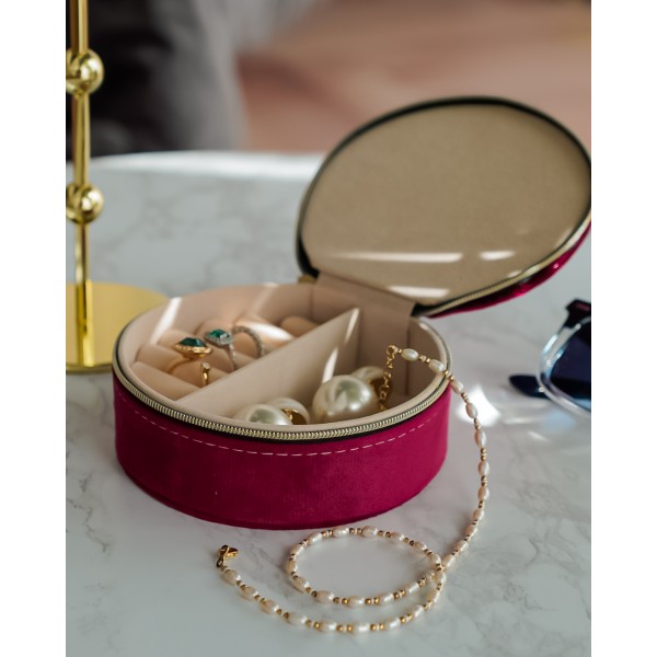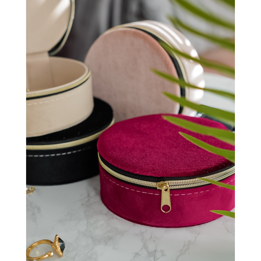 Portagioie Da Viaggio Rotonda in Velluto Con Zip 4 Colori