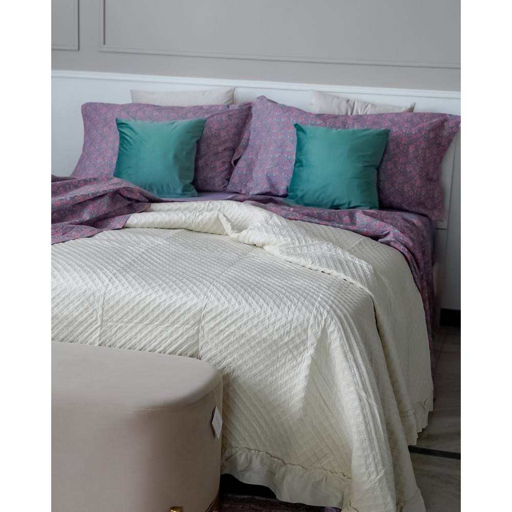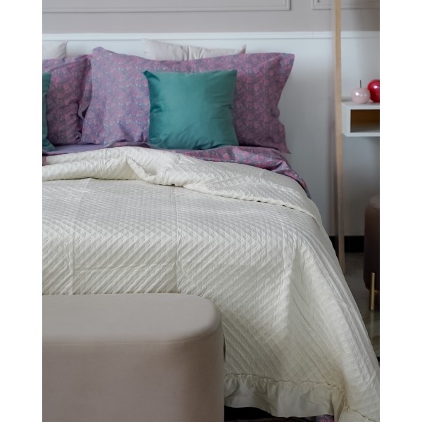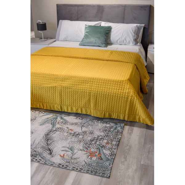 Trapuntino Matrimoniale Velvet Con Rouches E Impuntura a Fiore Vari Colori