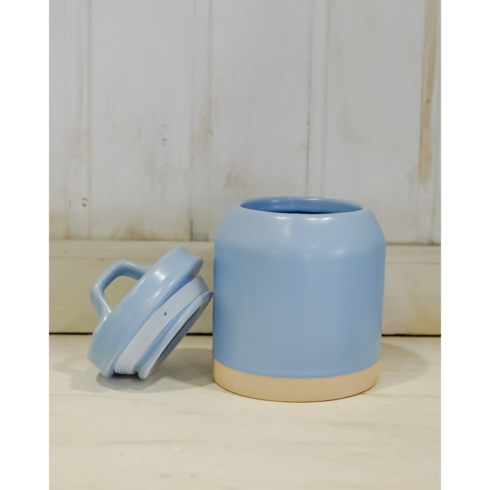 Barattolo natural in ceramica colorata e liscia. Disponibile in due colori: verde salvia e azzurro.