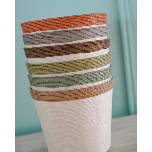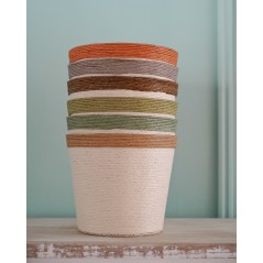 Vaso Fioriera in carta e polipropilene, graziosissima con la parte interna plastificata. Disponibile con bordino di differenti colori.