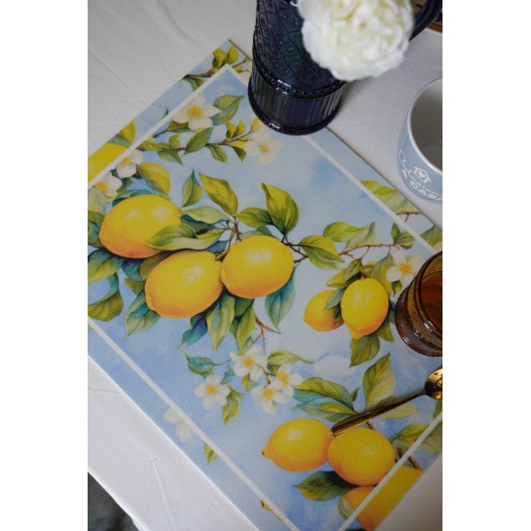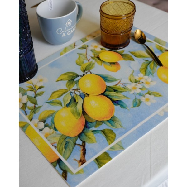 Tovaglietta Colazione Limoni In Vinile Lavabile Con Un Panno