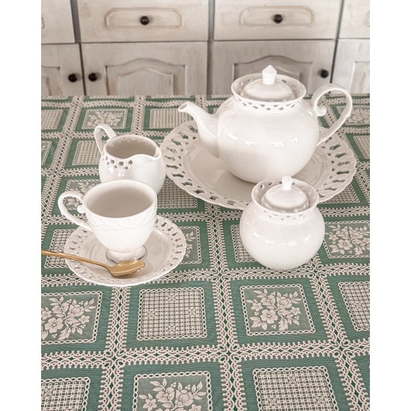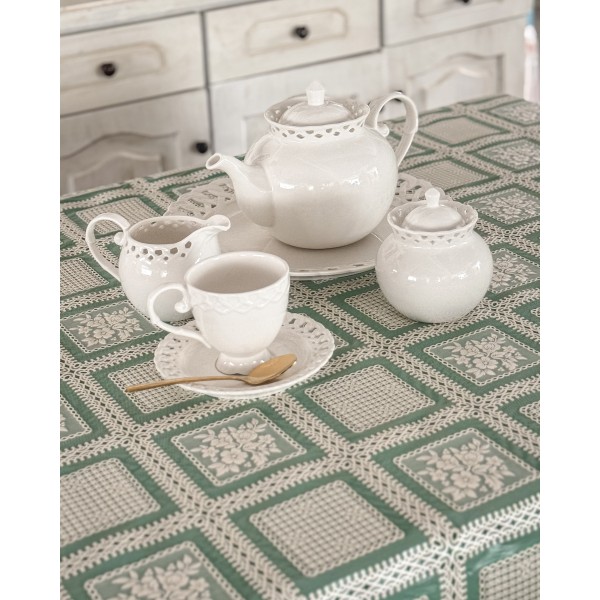 Tokyo Lace Verde Tovagliato A Metraggio Effetto Merletto Larghezza 137 Cm