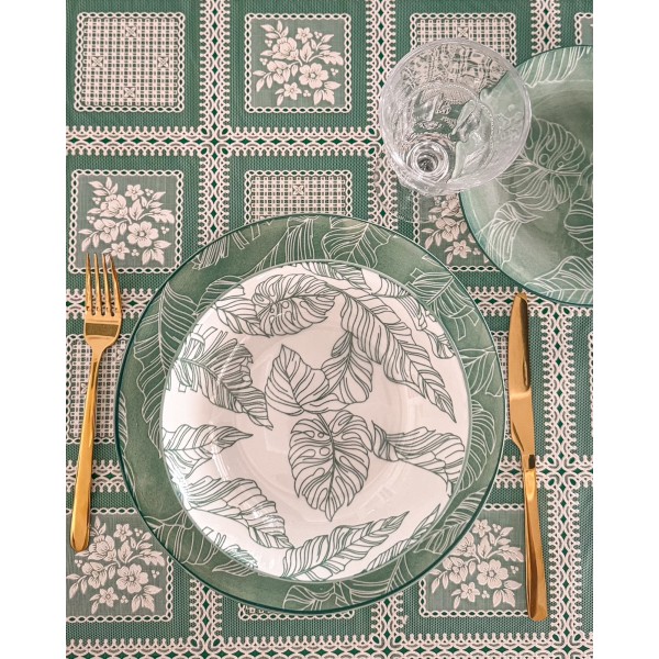 Tovagliato in pvc, Larghezza 137 cm, lunghezza la scegli tu. Sottofondo compatto con base verde che garantisce maggiore resistenza e durata. Facile da pulire, ideale sia per uso quotidiano che per occasioni speciali.
